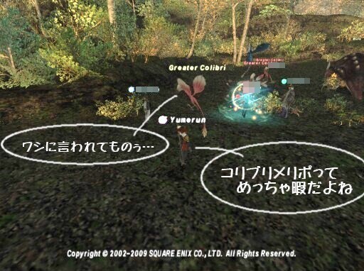つまり、このコリブリメリポは暇なんです。赤さんがいる時に白で参加した日には、ヘイスト時々ケアルみたいな感じで、眠気もマッハです。身内なら殴りかかってる所かも知れませんね・・・w
