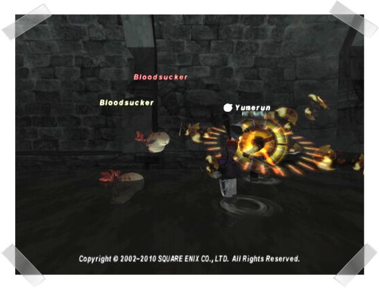 監獄地下のLeechは聴覚感知で、かなり広い距離でリンクを発生させます。ソロでやっていて大量リンクしてしまった場合などは、思いっきり逃げるとタゲが切れます。 地下エリア全域に水が張ってあり、聴覚感知のLeechは一定時間攻撃が届かないと、追ってこなくなるのです。 私の白で同時に相手に出来るLeechは3体までです。 リンクした子にはシグネットの効果が乗らず、回避もほぼ0なのでこれ以上は逃げるに限ります。