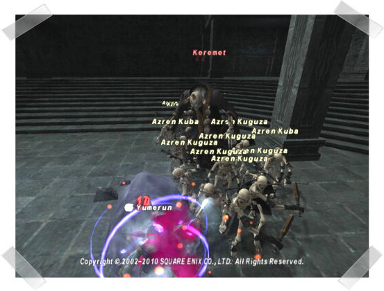 愛用のノーブルチュニックに返り血を浴びているであろうその姿で微笑みながら、カギをドロップするフォモルを探しに走るその姿は調理書を取りに来たのであろう裸の冒険者達の視線を一身に受けていました。白の装備なんて見ても楽しくないでしょうに…。